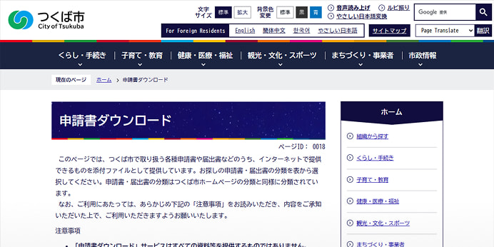 Tsukuba Municipal City homepage for Foreigner