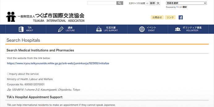 The Medical Information Net (NAVII), operated by the Ministry of Health, Labour and Welfare and prefectural governments, allows you to search for medical institutions and pharmacies nationwide.