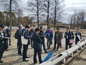 国土交通省国土技術政策総合研究所は、住宅・社会資本分野における唯一の国の研究機関として、技術を原動力に、現在そして将来にわたって安全・安心で活力と魅力ある国土と社会の実現を目指すことを使命として掲げる研究機関です。防災・減災、環境保全、気候変動適応、下水道、河川、土砂災害、道路交通、建築、住宅、都市計画、港湾、空港など、幅広い分野での調査・研究を行っており、その中でも今回は、下水道、道路交通分野をメインとして、移動式たわみ測定装置、下水道管路模擬施設及び試験走路を見学しました。