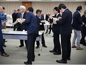 国土技術政策総合研究所8階会議室から筑波山を眺めながら、たいへん和やかな雰囲気に包まれたランチ会となりました。国土技術政策総合研究所の食堂からランチボックスとしてジューシーなサンドウィッチやおにぎり等が提供され、つくば地域の更なる発展や最近の出来事など様々な話題が交わされました。
