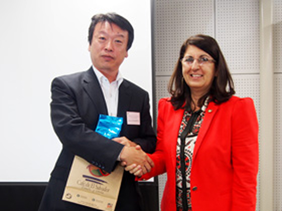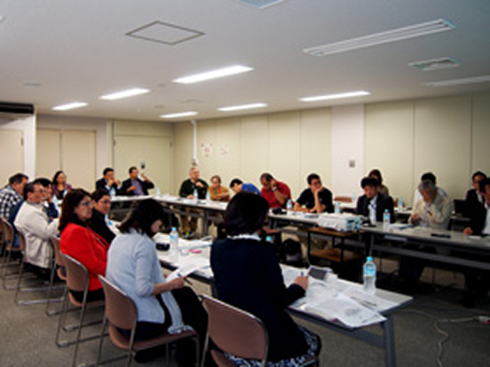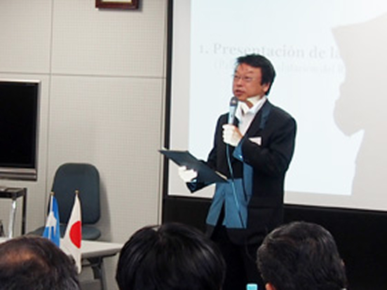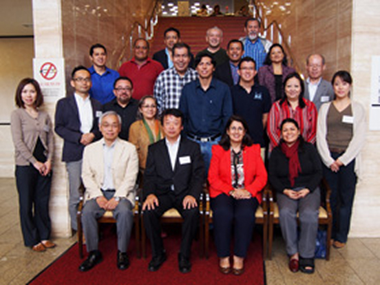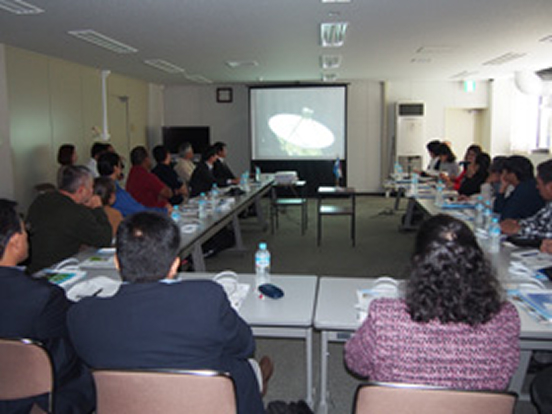 日時平成27年5月22日(金) 10:00~11:30来訪者・機関エルサルバドル国理科教育関係者(15名)訪問先・対応機関研究交流センター・筑協事務局来訪目的筑波研究学園都市の設立経緯と現状について 塚本所長挨拶 小玉つくば市国際交流協会理事長挨拶 ハンダル教育省副大臣挨拶 筑波研究学園都市VTR鑑賞 筑協事務局岩橋次長説明 会場の様子 贈呈式 集合写真