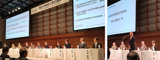 防災科学技術研究所寶理事長のよびかけにより、能登半島地震の観測や調査、復旧支援等に関わった11の研究機関が一堂に会し、活動の報告を行う特別セッションが開催されました。福田敬大・筑協会長は、各研究機関が災害発生時に実施した調査や支援活動を共有・発信することで、より広範な情報交換が可能となり、それが今後の研究や連携強化に寄与することへの期待を述べました。