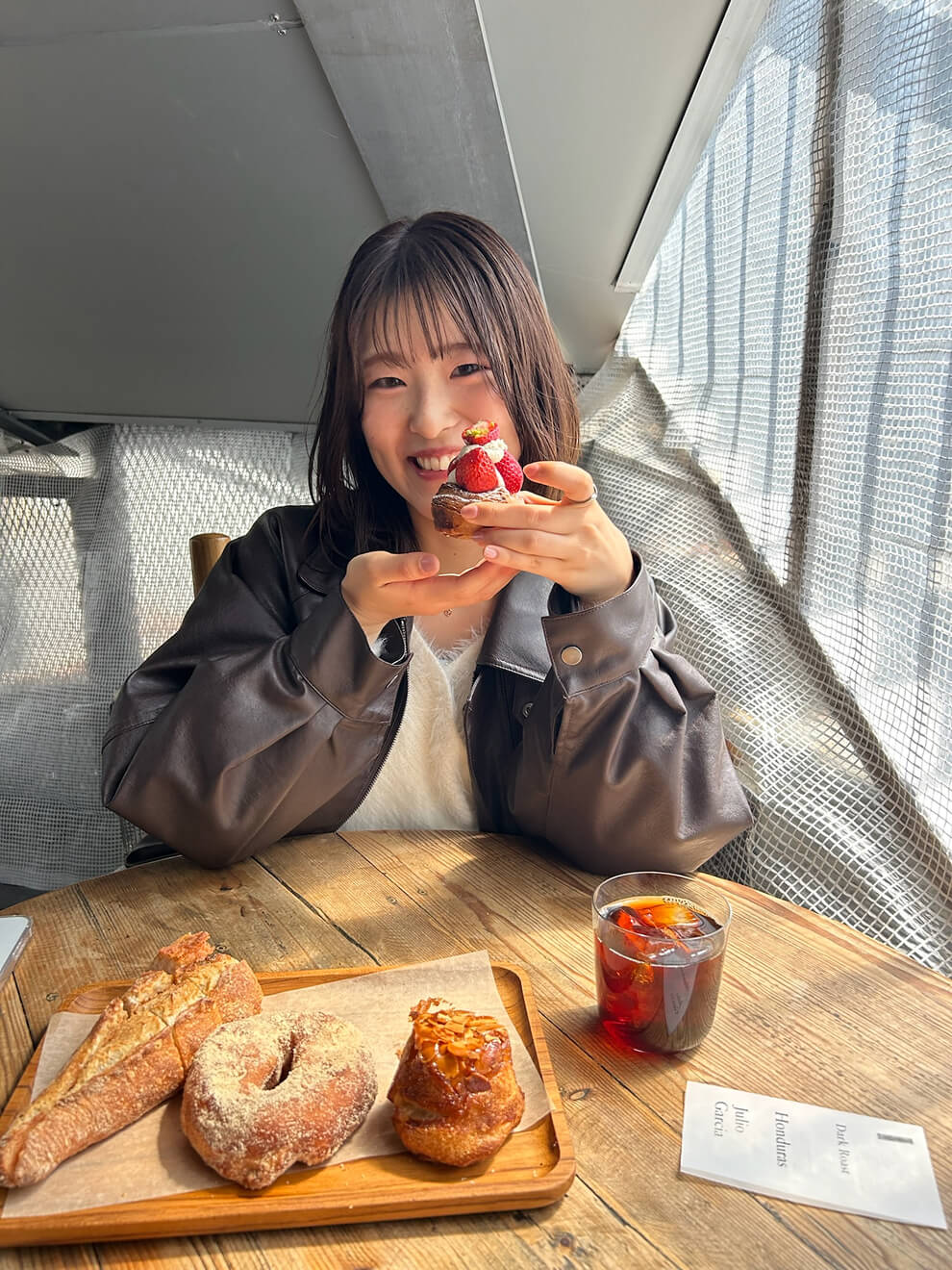 休日は、つくば市内のパン屋巡りやお気に入りの古着屋での買い物を楽しんでいます。最近は「sopo bagle」のベーグルがお気に入りで、テイクアウトして公園で友人とピクニックすることも。また、季節ごとに「THE SUN vintage」で一着を選ぶのも楽しみのひとつです。
